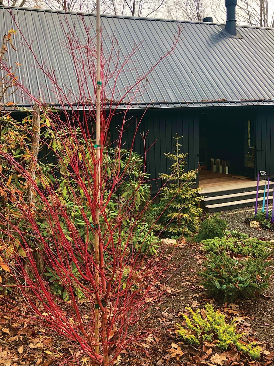 From left: Coral Bark maple, ‘Everillo’ carex, Panicum (switch grass)