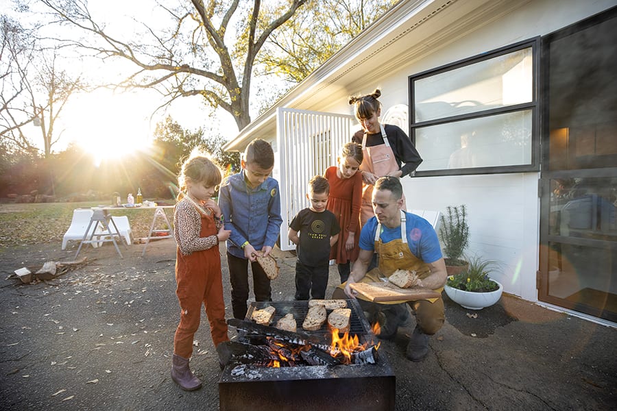Each week, the couple turns out nearly 250 crusty loaves from their tiny bread shop. Last summer, with the help of a friend, the Roses reconfigured a 450-square-foot carport in the home where they’ve lived since 2011 into a working bake kitchen. They market the bread, which sells for $8 to $16 a loaf, exclusively through Instagram (@teamrosebread) and word of mouth. Twice a month, the family of six sells loaves at Matthews Community Farmers’ Market, and, occasionally, they host Saturday pop-up events where they sell specialty baked goods — cinnamon rolls, sticky buns and vegan doughnuts are among their recent offerings.
