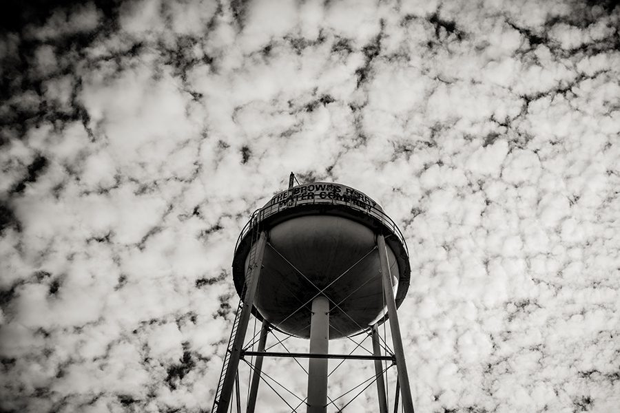 The water tower at Brown’s Ferry Water Company, top left; Sumter Cut Rate Soda Fountain, left; Todd Touchberry, the restaurant’s general manager, right.