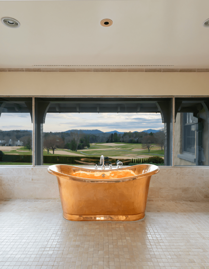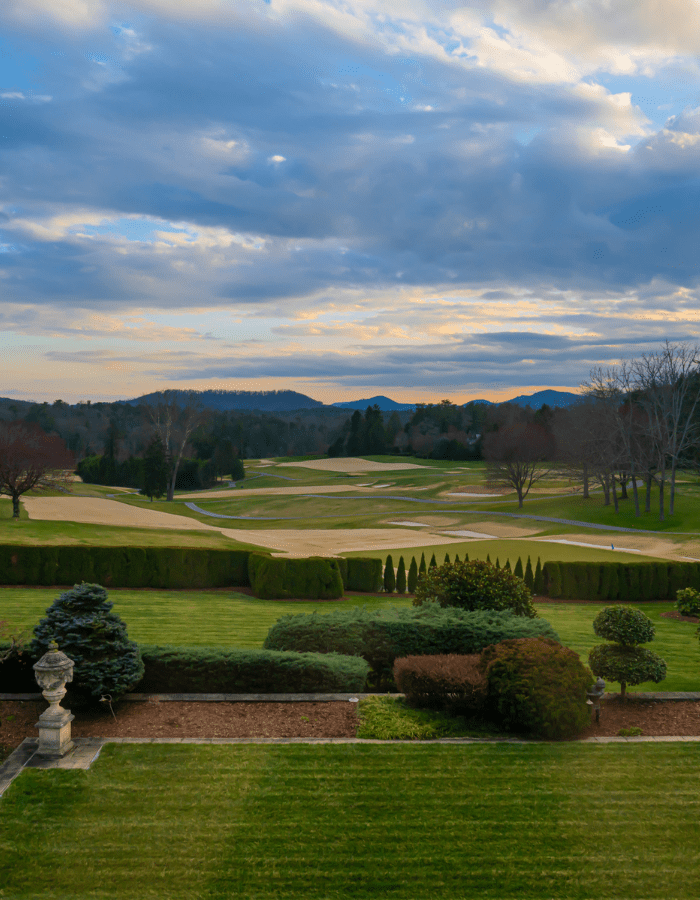 This Biltmore Forest estate was envisioned by architect Richard Sharp Smith for Burnham S. Colburn and reimagined by Robert Griffin in the early 2000s. The property boasts manicured lawns, seasonal gardens, water features, and panoramic views of the private golf course. There is a lower-level kitchen and grilling area, plus many other amenities, including a greenhouse, stables, and a carriage house. Photos by Ryan Theede.