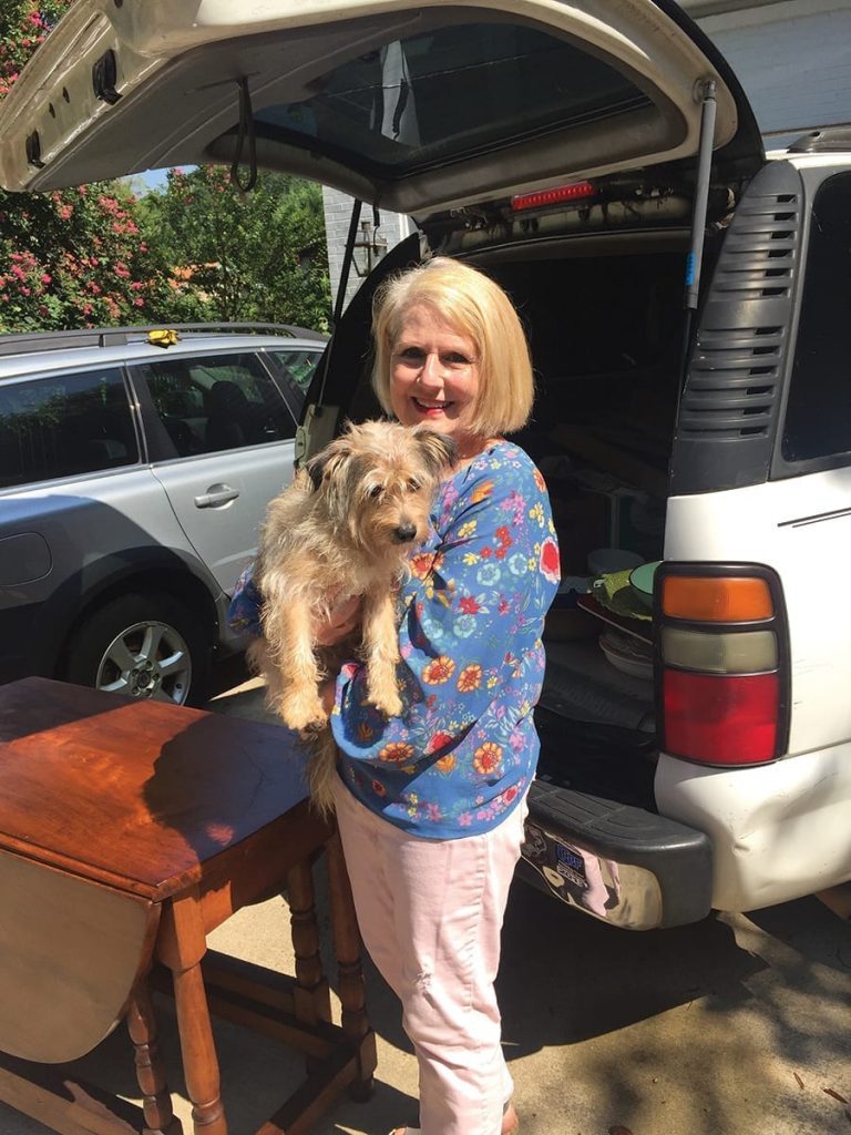 Chinoiserie Squirrel founder Linda Kincheloe and her white Suburban, known to vendors as “Snowflake”