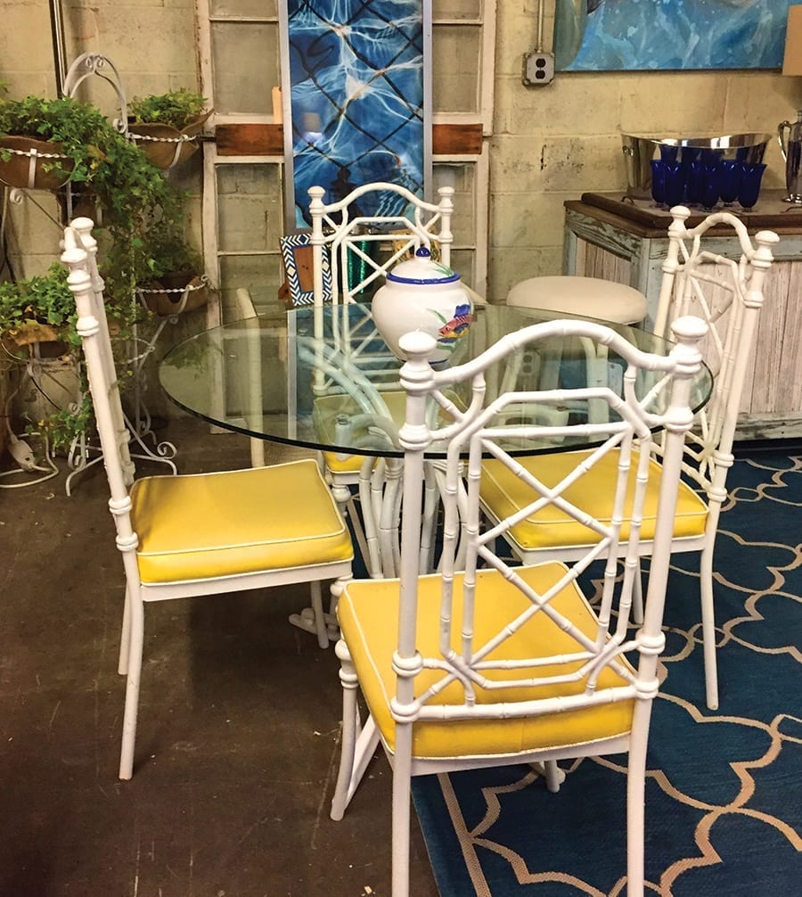 “All my girlfriends play bridge, and I say, “Just drop me at a Salvation Army!” says Kincheloe of her passion for seeking vintage items. “‘Catch and release’ is my mantra. I love to find one-of-a-kind things, then let someone else enjoy them. Oftentimes, somebody just needs to put a little loving into it, and they’ve got a really, really great piece.”