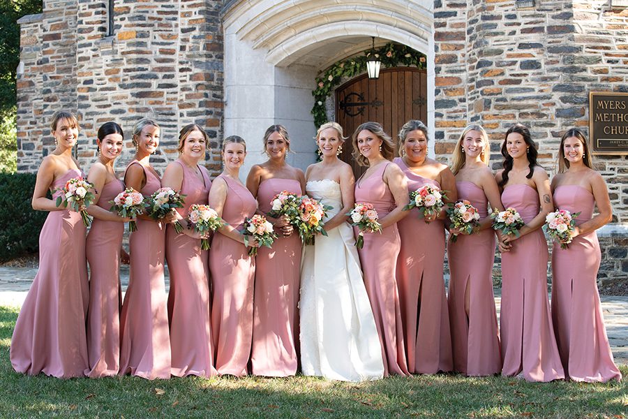 “That was so special to me … it is a beautiful venue,” says Ellen, who married Gray at his childhood church, Myers Park United Methodist. Both born and raised in Charlotte and Myers Park grads, the couple met in passing at Selwyn Pub but didn’t start dating until a few years later when they ran into each other again. “I had actually asked him if he had any friends he could set me up with,” Ellen says with a laugh. “He had different plans!”