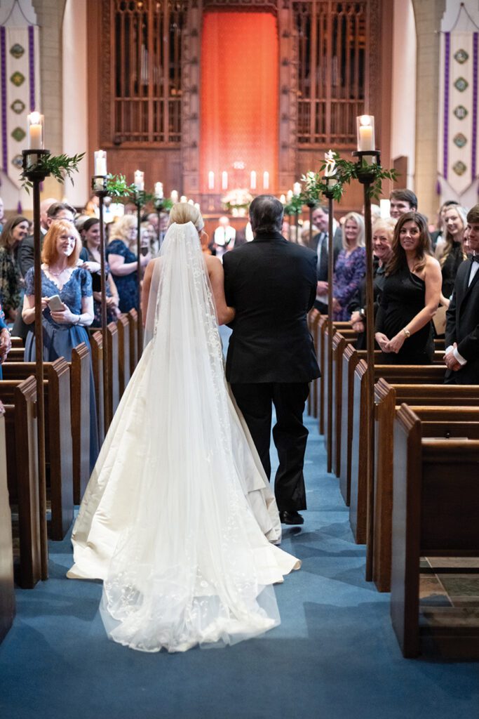 Family keepsakes were present throughout the wedding. Ellen wore her mom’s veil, which had also been worn by her grandmother and aunt. The couple cut the cake with the knife given to Ellen’s parents by Charlotte Country Club at their reception years ago.