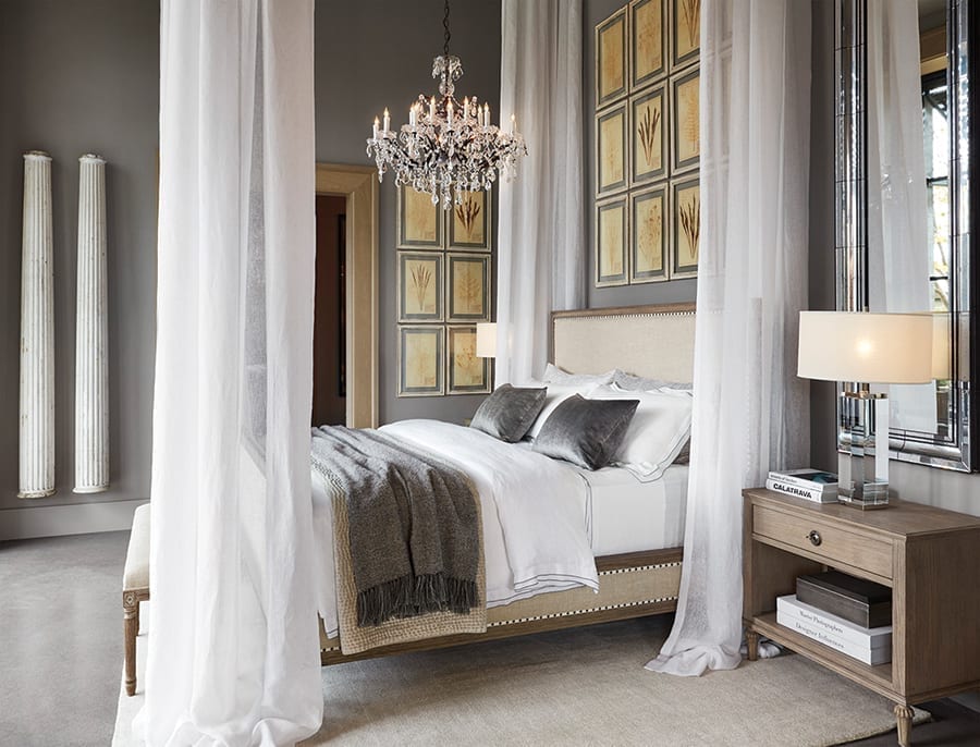Outside the gallery entrance, twin loggias surrounded by boxwood hedges invite you to sit down and relax on lounges accented with soothing fountains, tidy succulents and candlelit lanterns. Upon entering the 50,000-square-foot space — more than seven times the size of RH’s original Phillips Place location — you’ll find two floors dedicated to the brand’s luxury home furnishings. The first floor houses RH’s classic Interiors collection, while second-floor showrooms display the brand’s Modern collection and an expansive design atelier, where a team of interior designers can help you navigate seemingly endless selections of neutral-hued rugs, window treatments, bed and bath linens, hardware, and furniture finishes.