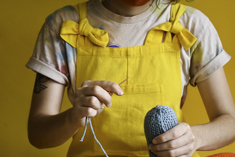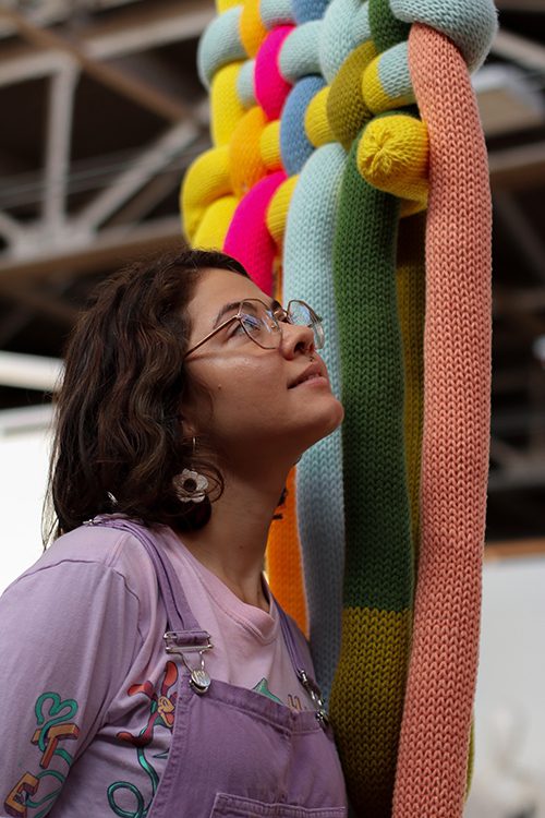 Katrina Sanchez Standfield has not changed much from the young child who cruised around her neighborhood on a bike, tossing out paintings like a paperboy. Today, she trades the paintbrush for yarn but still tries to connect with anyone and everyone she can through her vibrant, exuberant art.