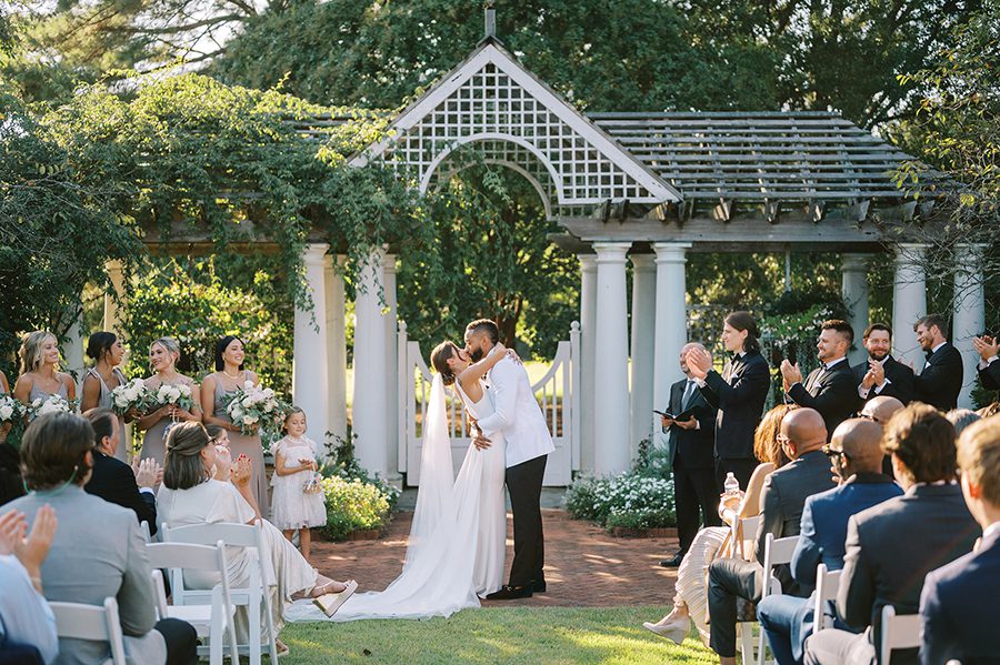 Daniel Stowe Botanical Garden was the only venue the couple considered. They wanted to get married outdoors and appreciated the beautiful backdrop of the gardens. “It was the most perfect place for us,” Kendra says.