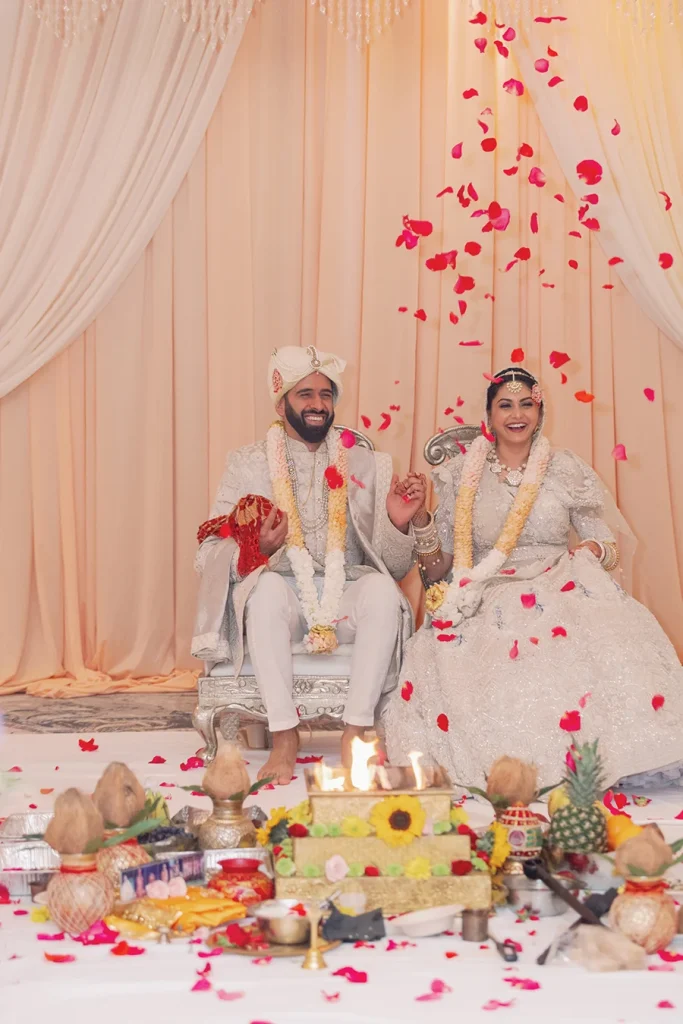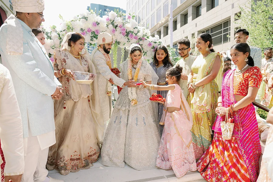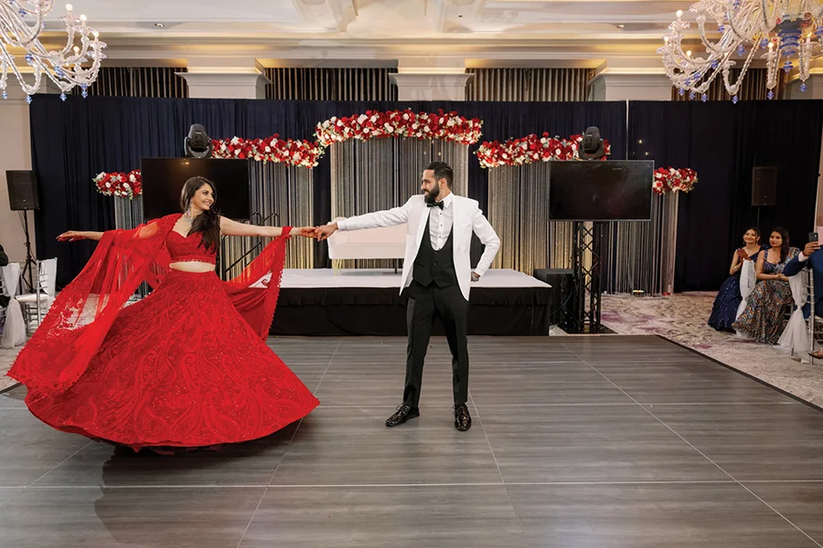 To propose, Pranav, a clinical pharmacist, rented an art gallery in Chelsea, creating an exhibit of special moments the couple had shared. “I wanted to use Komal’s passion for art,” he says. “I set up easels with our photos on canvases, and accompanying those were letter scrolls of what those moments meant to me and for our relationship. At the last easel the canvas said ‘Our next chapter,’ and I read a letter to Komal finally asking her to marry me.”