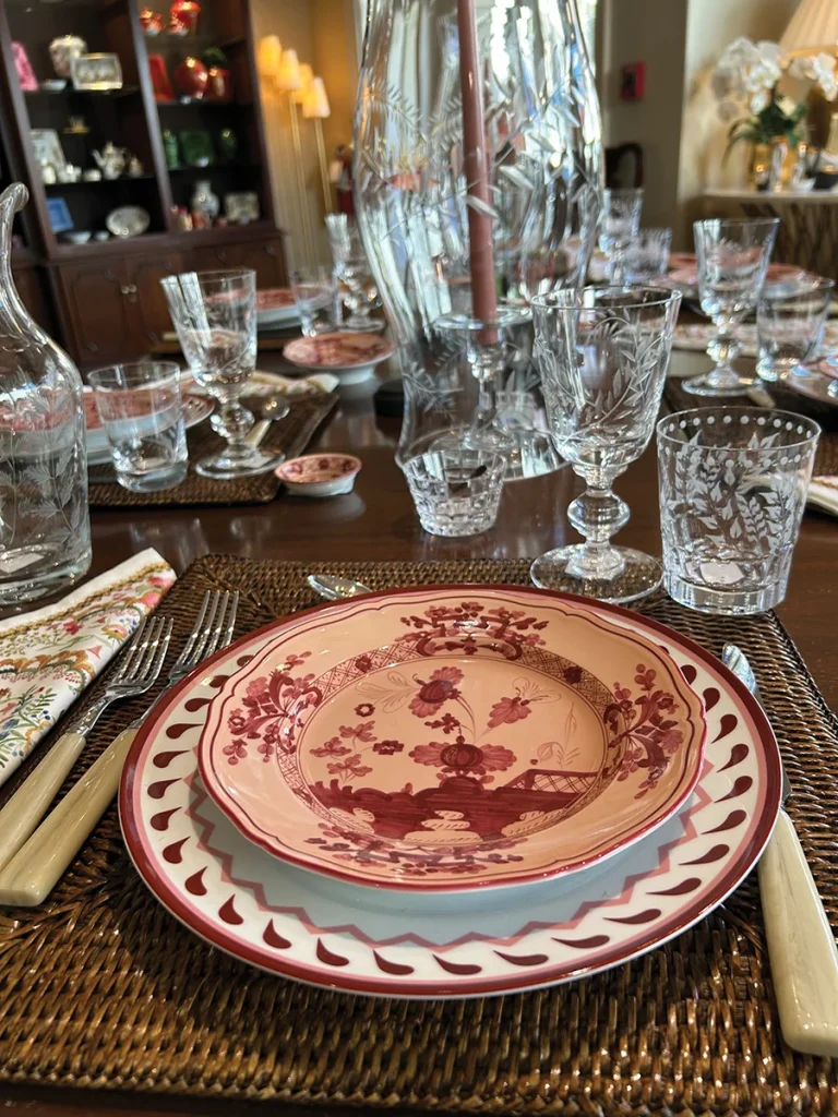 Couples also want plenty of options, with many focused on fun, unique items to use when hosting guests, according to John Dabbs Ltd.’s Ginny Touma. “Everyone wants to entertain at home with fun tablescapes that are full of bright colorful linens, chargers, colored-glass stemware, and candlesticks of varying heights and shapes,” she says. “Tables can be fun and playful — mixing patterns and not sticking to the rules.”