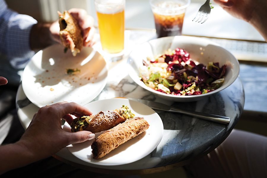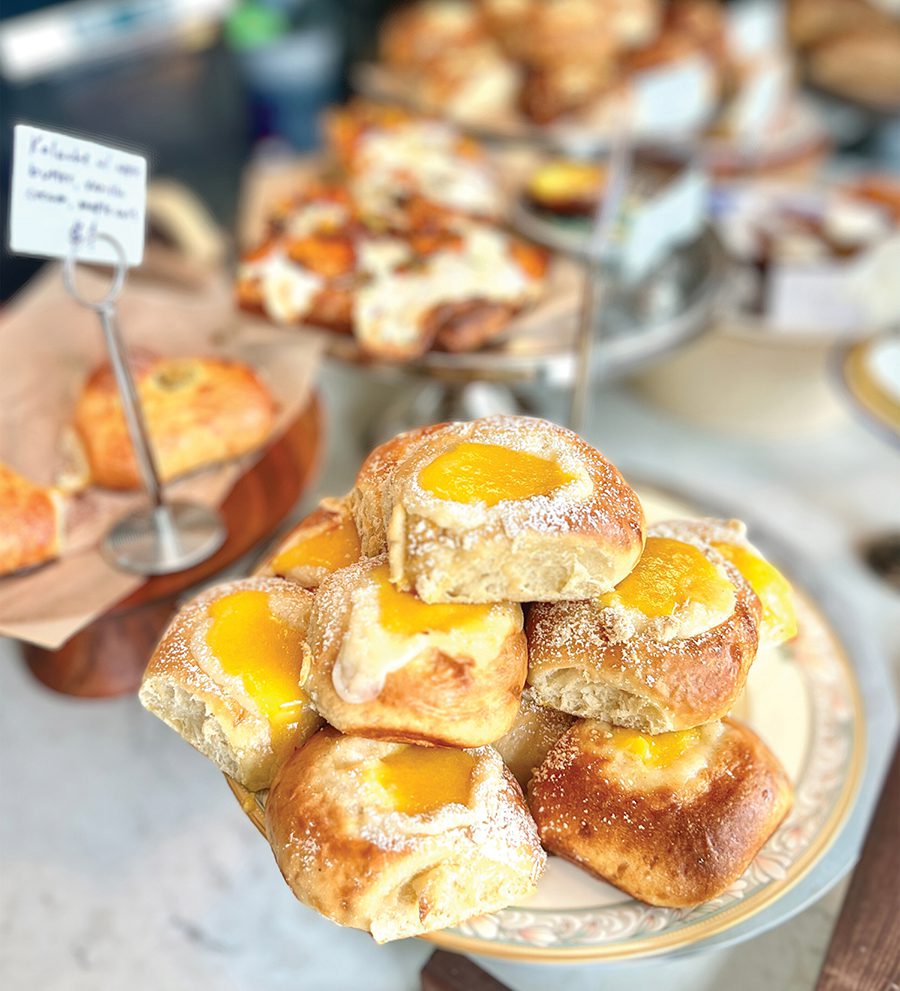 With a head start leaving Charlotte, I put Weltons Tiny Bakeshop first on my list. This newcomer to Upper King Street, which opened late last year, is known to have a line out the door and limited hours of operation. As the name implies, it’s tight quarters — only parties of two are allowed in the shop at a time — but patience pays off. An attentive and friendly face behind the counter warmly guides guests through a selection of savory and sweet pastries and breads made with heirloom grains.