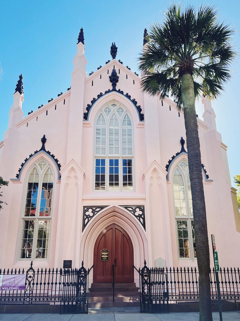 Left: Huguenot Church. Photo courtesy Walk & Talk Charleston. Right: High Battery Seawall