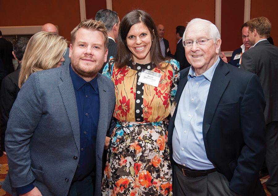 James Corden, host of The Late Show, Amy Liz Pittenger Collins of Charlotte’s Bahakel Communications and Babb