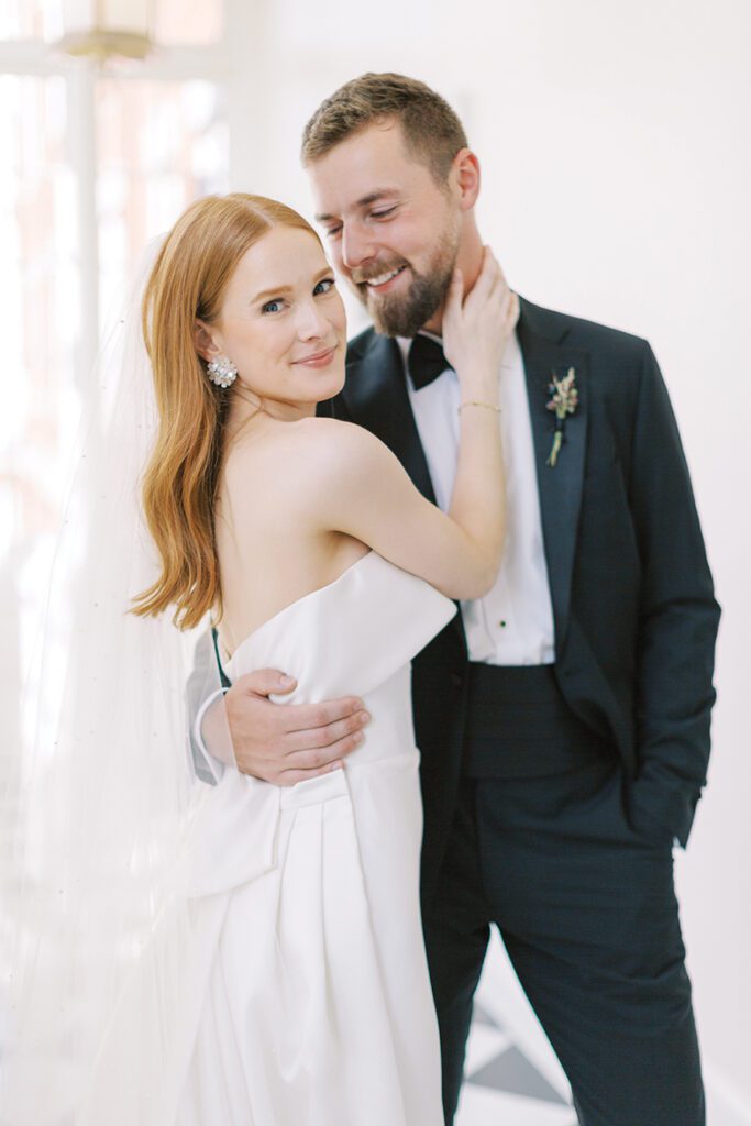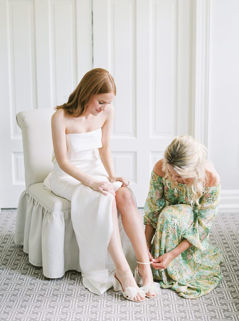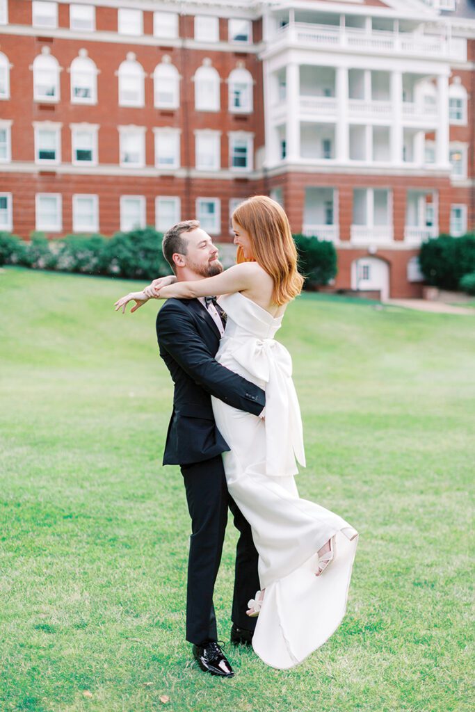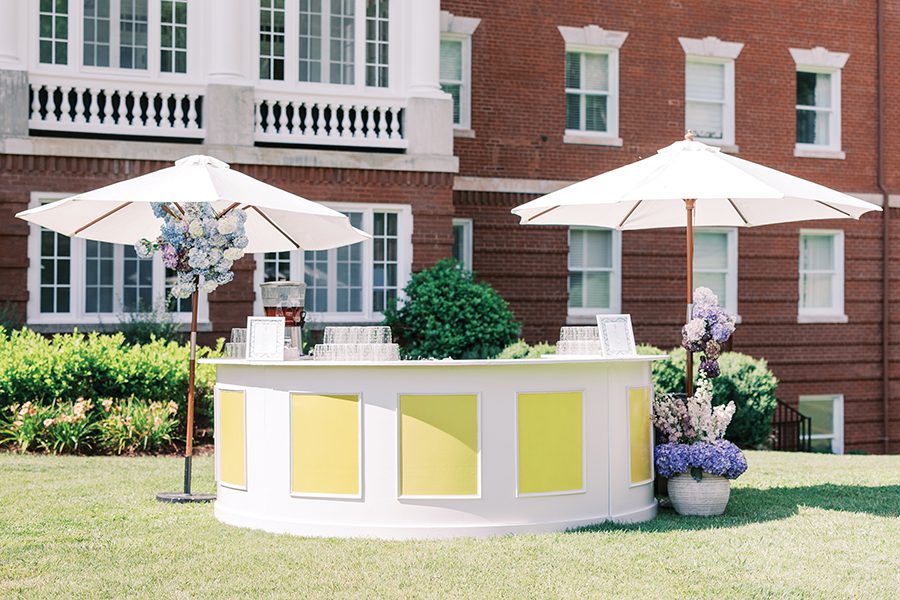 The Huntersville couple — both former college athletes at Bridgewater College in Bridgewater, Va. — envisioned a traditional and timeless wedding, yet one that felt fun and different. “We loved being in the mountains, the historic and classic feel of the hotel that allowed us to add our special touches to make it feel like our own,” Bailey says.