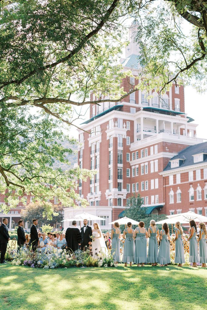 “We wanted to be surrounded by our friends and family in a single location where we could all relax and have fun for the weekend,” says Bailey, of her and Jake’s choice to get married at the majestic Omni Homestead Resort in Hot Springs, Va.