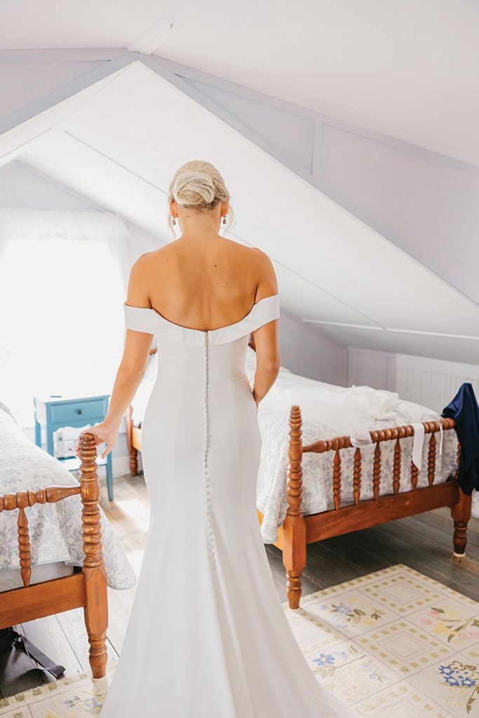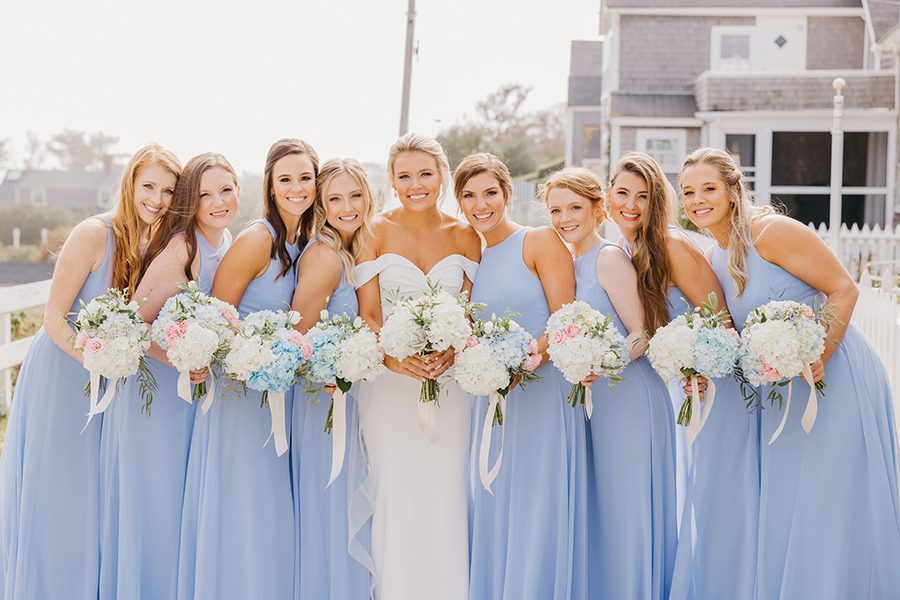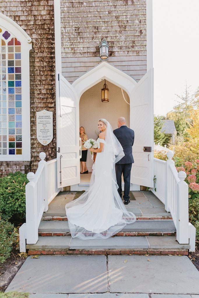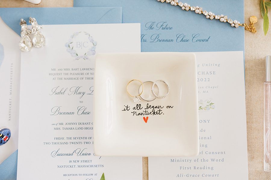For Belle Cowart, where she was going to get married was decided long before the who. A Charlotte real-estate agent from Mooresville, she spent her childhood summers at her family’s cottage in Nantucket, Mass. “I had seen so many brides walking down the cobblestone road outside our cottage, taking photos,” she says. “And my mom and I would always peek out and watch as they went by. I always wanted that to be me someday!” That someday happened on a sunny, 7Z0-degree day in October, following days of bad weather. The couple took first-look photos in front of the Sankaty Head Lighthouse, the spot where Chase proposed. “It was such a beautiful and intimate moment for us,” Belle says. They wed at the Siasconset Union Chapel, where Belle’s grandparents’ memorial sits in the garden. Following the ceremony, guests strolled next door for the happy hour and reception, enjoying Cape Cod cocktails and his/hers specialty drinks, surf (halibut) and turf (tenderloin), a high-energy band, and a memorable father-daughter dance to two songs: Frank Sinatra’s “The Way You Look Tonight” and the Rolling Stones’ “Start Me Up.” “When ‘Start Me Up’ came on, we broke out into a choreographed dance that my dad came up with,” Belle says. “We had everyone join us on the dance floor right after. Everyone loved it, and it set the tone for the rest of the night!”