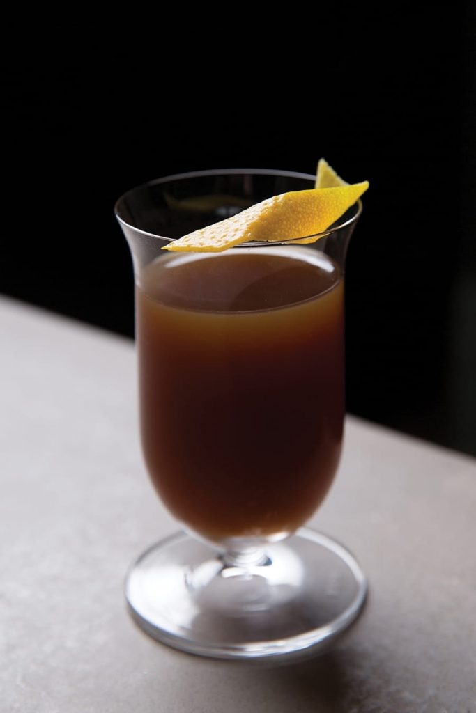 Calvados de Christian Drouin, yellow chartreuse, Cappelletti (a wine-based apertif), fresh lemon and Angostura bitters