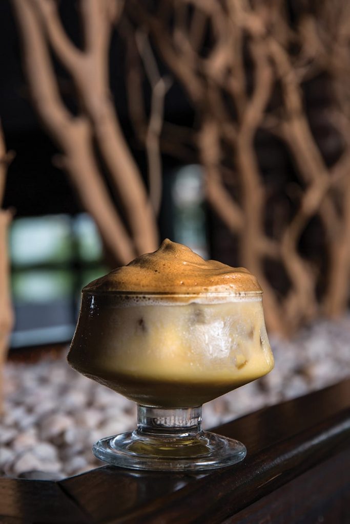 Plantation Original Dark rum, Fernet-Branca, Japanese pumpkin orgeat, coconut milk and dalgona coffee foam