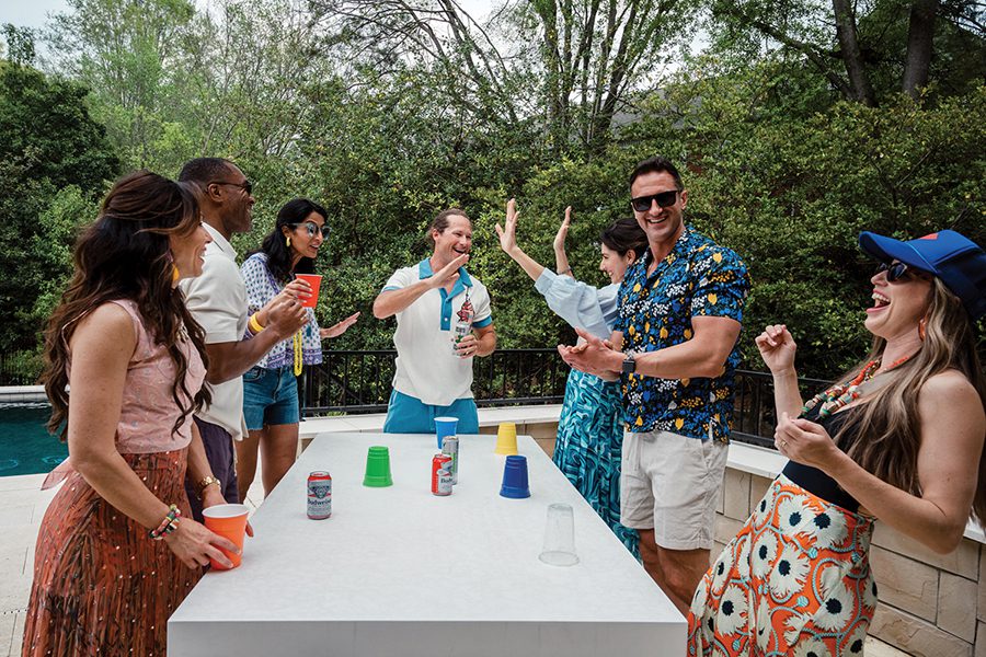 Inspiration for a summer soiree: A poolside party with tropical sips, delectable fare, and bold and breezy style.