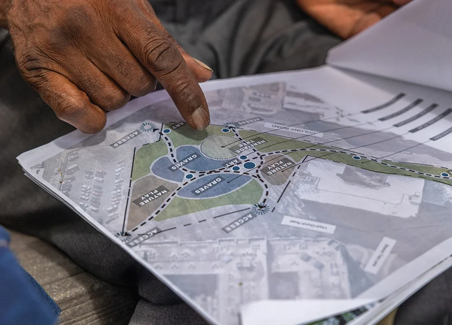 This summer, a company began clearing dead and decaying trees from the site. More gravesites have been identified. And plans have been drawn up to create a space that will honor the land’s history and provide a public space for the community to gather in and enjoy.