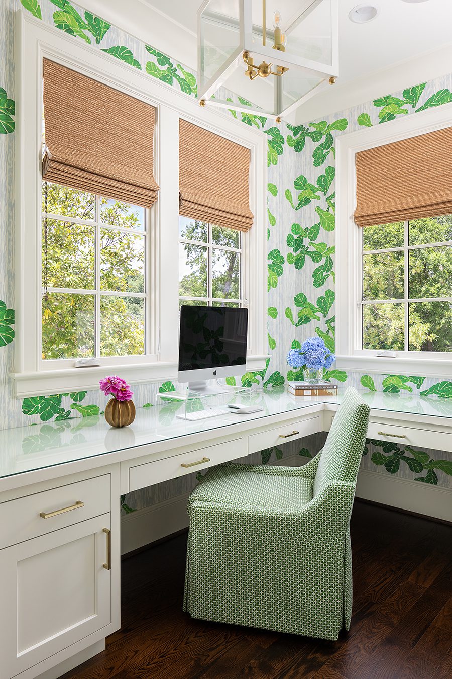 “Ellen and Jordan wanted a bright, happy home that was highly functional with no rooms off limits to their three boys,” Allen says. “We used a lot of cheerful greens and blues and a lot of performance fabrics.”