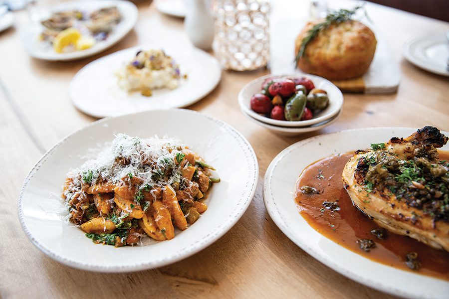 This restaurant exudes homey comfort with its plank wood walls and rustic-yet-modern decor. With numerous dining areas — including large heated patios, covered and uncovered — guests will want to stay a while as they nosh on a menu of comfort foods and shareables like devilish (egg) toast and smoked cashew mac.