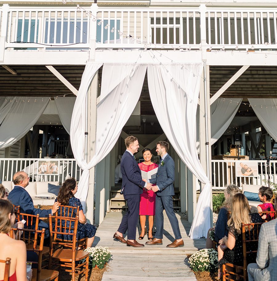 “Over a time span of 10 years, we were acquaintances, who became friends, who became boyfriends, who became husbands,” says Ben, anchor for WCNC’s Wake Up Charlotte. After canceled plans because of the pandemic, Ben, surrounded by close friends, dropped to one knee on a North Carolina beach they’d visited hundreds of times to propose to Brad. The couple’s engagement was a bittersweet season, as Ben’s dad was fighting terminal cancer. “It was really important to me that my dad knew I was getting married and I was happy,” Ben says. Weeks after the engagement, Ben’s dad passed away. On the day of their wedding, Ben and Brad exchanged vows as the sun was setting at Ben’s dad’s favorite place in the world: his family beach house at Sunset Beach. “It was an obvious choice.”