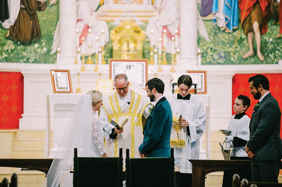 The couple’s ceremony at St. Ann Catholic Church was their top priority. They chose not to do a first look, so seeing each other for the first time as Jamie started down the aisle — with the St. Ann choir singing alongside a string quartet — stands out as a favorite moment. “We were so ready for and in awe of the step we were taking in joining our lives together,” Jamie says.